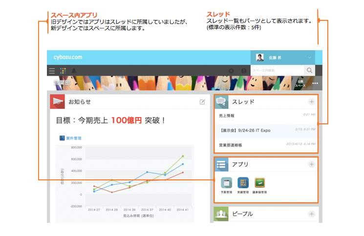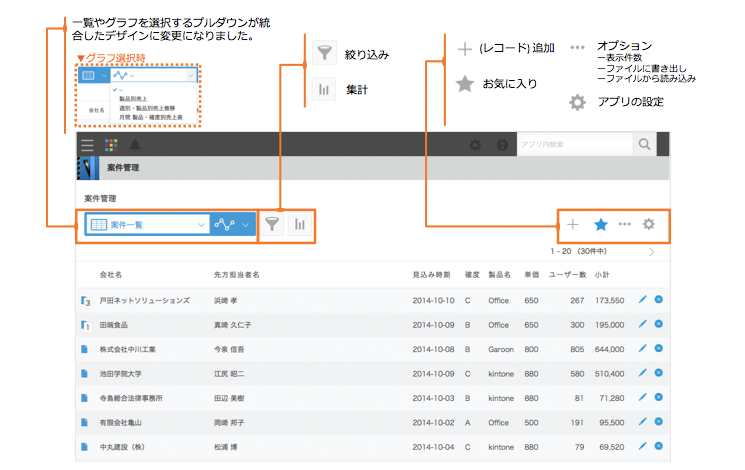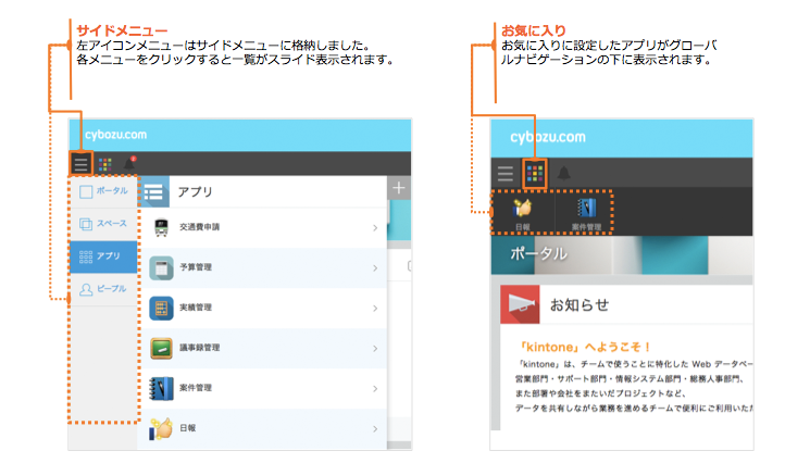 新デザインではタッチデバイスでの利用や、可読性に配慮した、kintoneの情報をより見やすく、使いやすいデザインを目指しています。