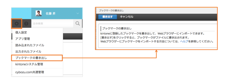 kintoneに登録したブックマークを書き出して、Webブラウザーにインポートできます。