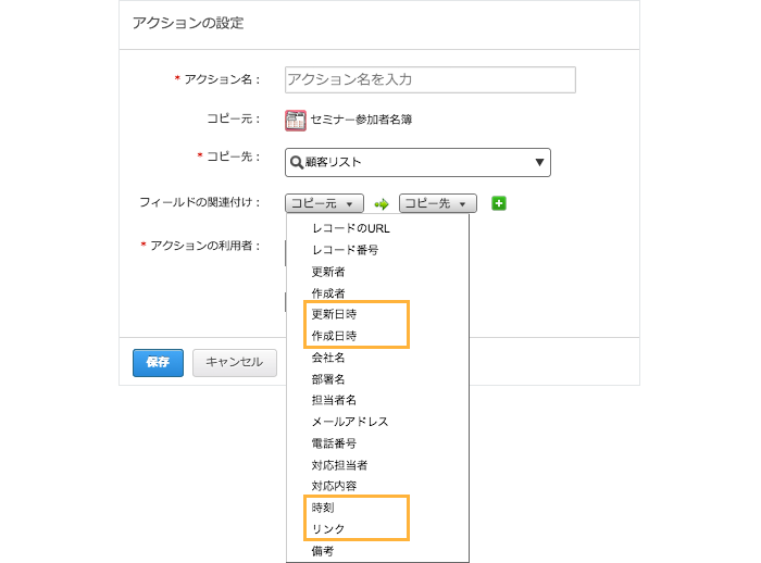 アプリのアクションでコピーできるフィールドタイプを増やしました。