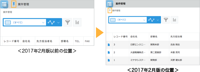 アプリ、スペース内アプリともパンくずの行頭にピンが表示されました。