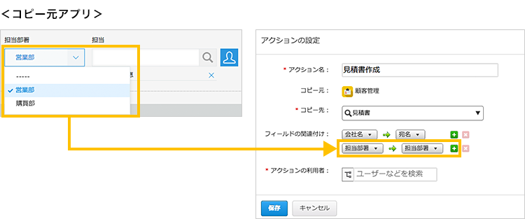 アプリのアクションメニューでドロップダウンフィールドが設定できるようになりました。