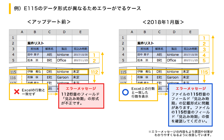 Excelファイルからアプリを作成するときや、ファイル読み込みに失敗した場合、エラーメッセージでExcelファイル上の実際の行数を表示するようになりました。
