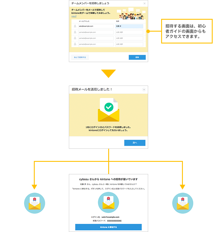 kintoneを最初にご利用いただくときや、試用期間中に、他のチームメンバーを招待する機能を追加しました。