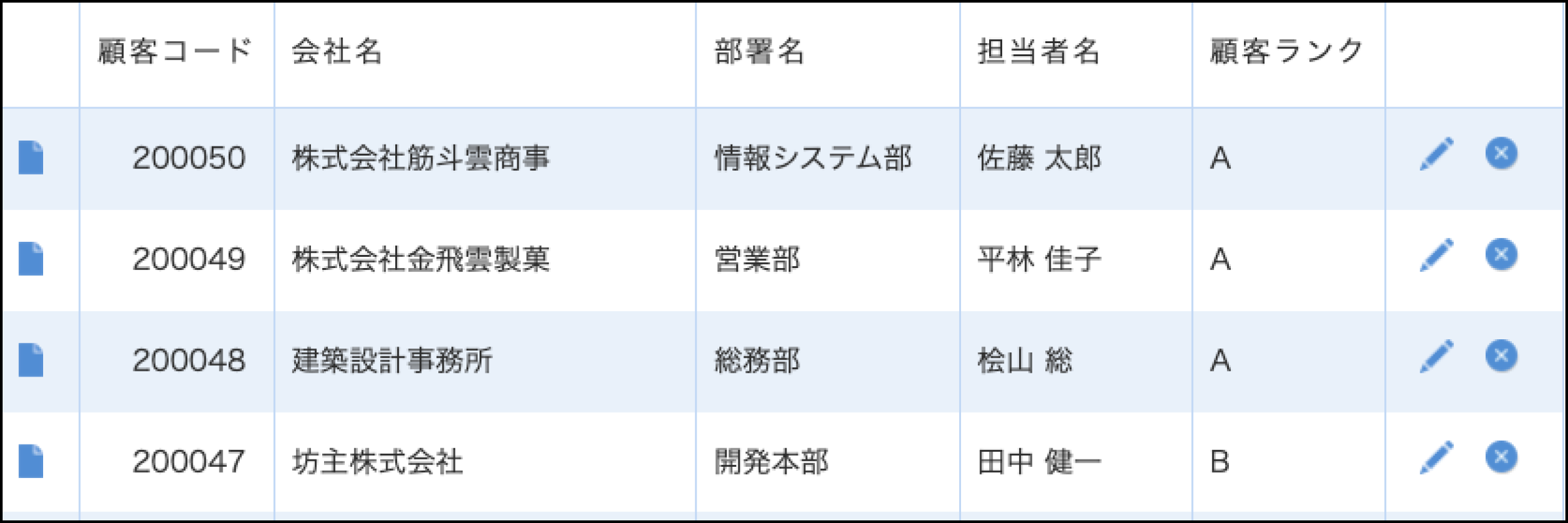レコード一覧画面でのレコードの編集・削除操作を