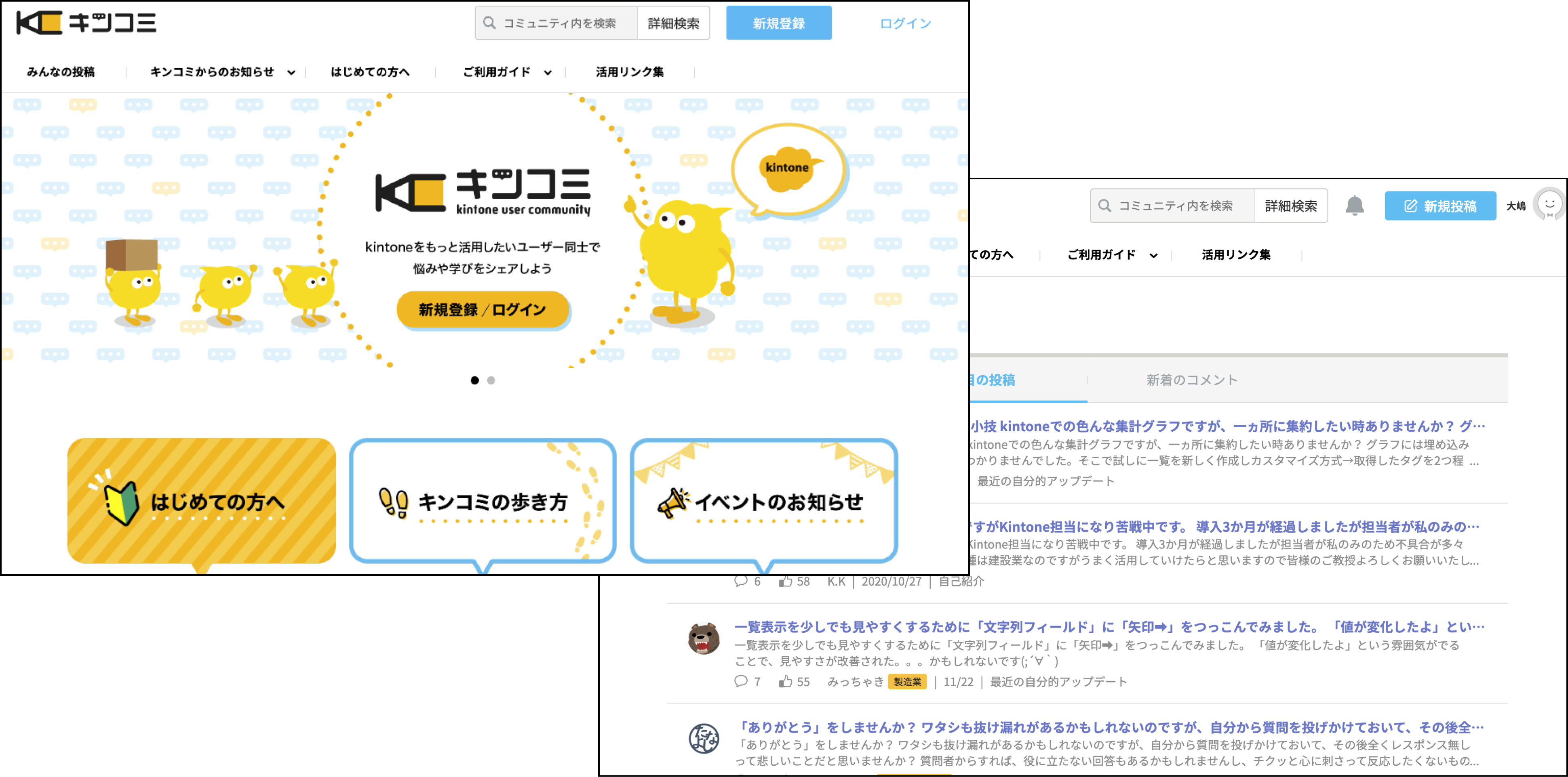 kintoneを利用する上で出てくるお悩みや活用についてユーザー同士で共有できます。