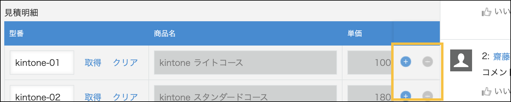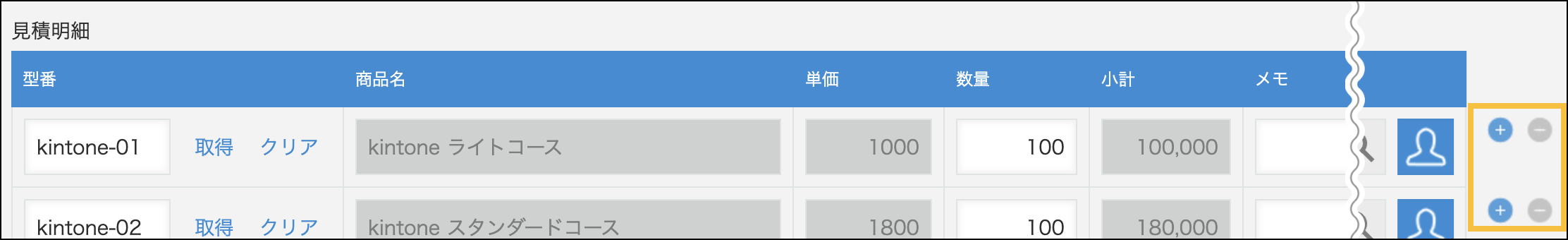 レコード編集画面のテーブルフィールドの行追加・削除ボタンについて、右端で固定表示される新しいデザインを提供中です。